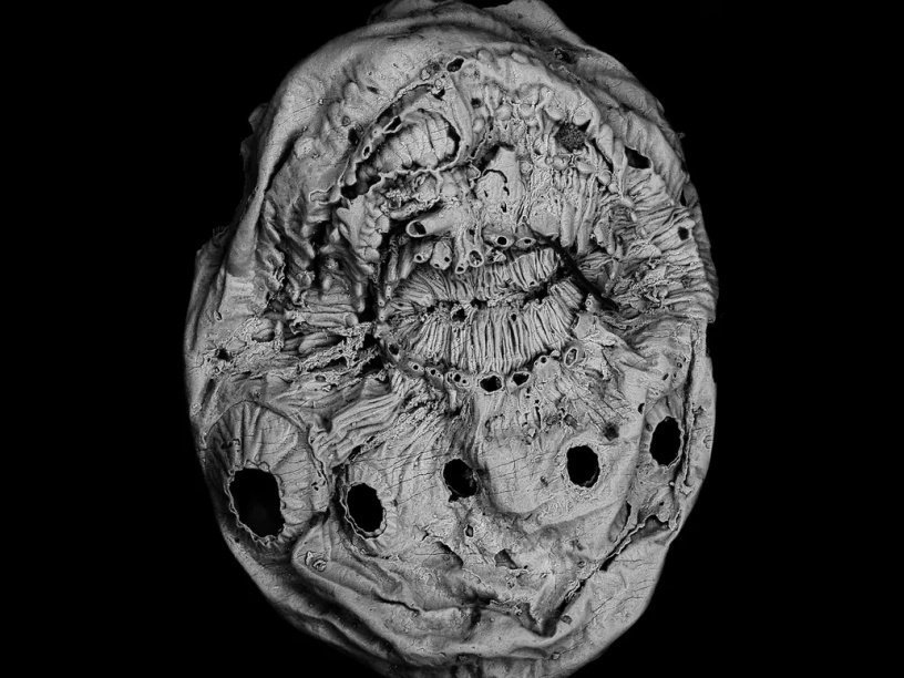 Теперь команда палеонтологов из Китая, Великобритании, Швейцарии, Германии и США, изучив новые образцы Saccorhytus coronarius, которые сохранились гораздо лучше, утверждает, что гипотезу о родстве этого животного со вторичноротыми придется отвергнуть. Они собрали сотни дополнительных образцов, которые использовали для создания цифровых 3D-моделей существа, чтобы подробно выявить микроскопические особенности строения.