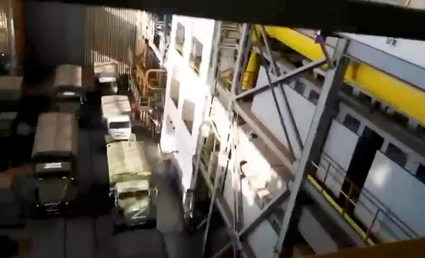 Телеканал CNN подтвердил подлинность видео из машинного зала Запорожской АЭС, которое появилось в соцсетях накануне. В ролике видно, что в зале, где находятся связанные с реактором турбины, стоят не менее пяти российских военных грузовиков; один из них отмечен буквой Z.