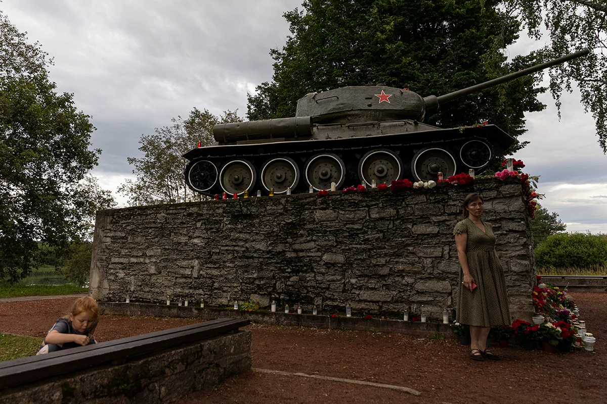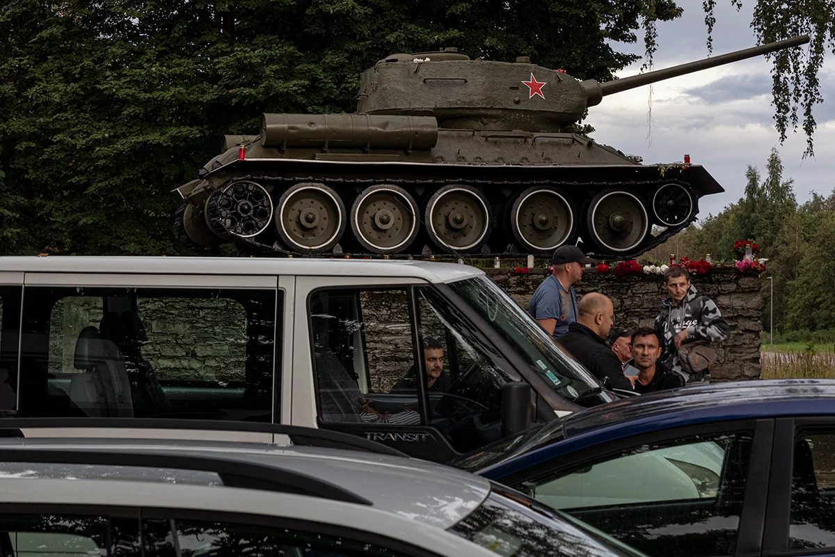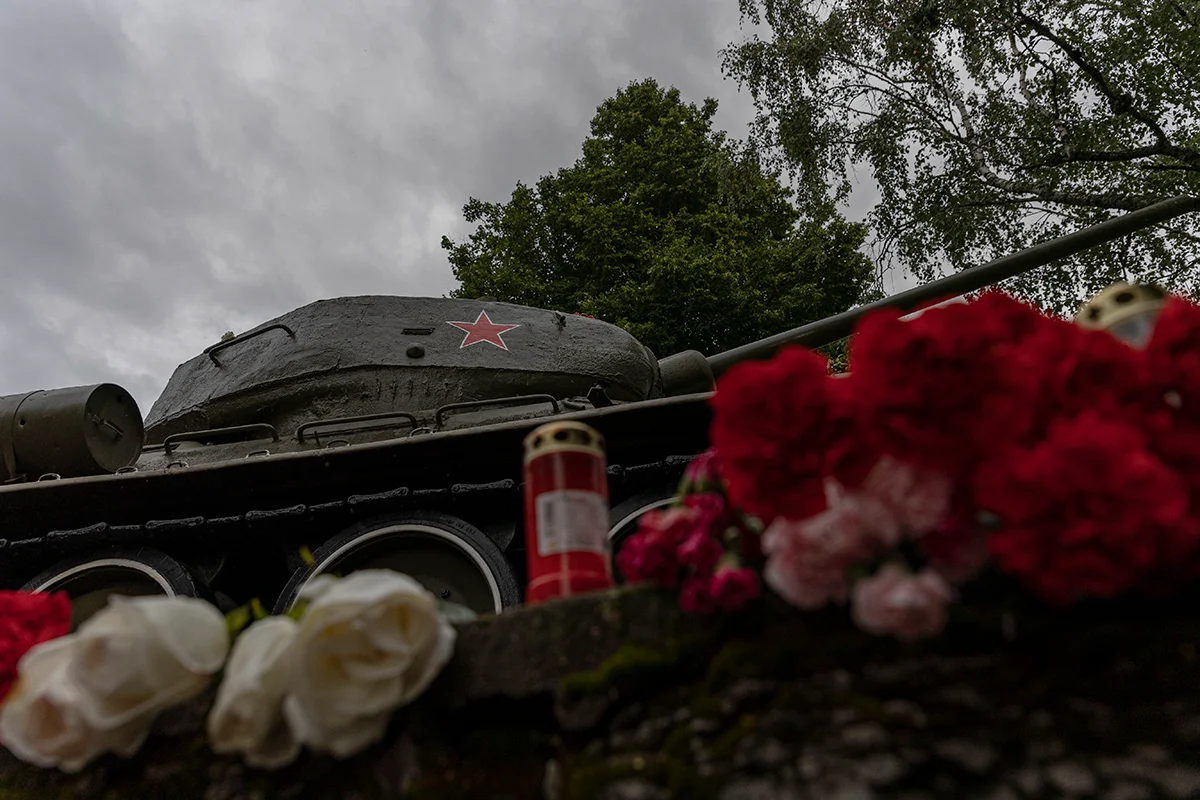 Еще неделю назад памятник стоял, усыпанный цветами — преимущественно красными гвоздиками — и заставленный свечами. Люди вышли к танку сразу же после того, как в начале августа премьер-министр Эстонии Кая Каллас объявила о необходимости убрать из публичного пространства «мемориалы с символикой оккупационной [в данном случае — советской] власти».