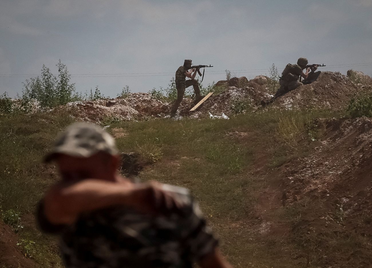Важная часть подготовки новобранцев — обучение их тактическим приемам, которые должны сбить с толку россиян, уверенных, что украинцы воюют по тем же советским методичкам, что и они. Инструкторы поделили своих подопечных на два взвода по 32 человека в каждом, которые в конце обучения должны сразиться друг с другом. Первым взводом командует Максим — 38-летний бухгалтер родом из Донбасса. У него нет вообще никакого военного опыта. Второй командир — 32-летний Игорь, судомеханик с торгового флота из Одессы, который хвастается, что ближний бой его не испугает: мол, на судне тоже тесно, жарко, все время приходится работать, а отдыхать некогда.