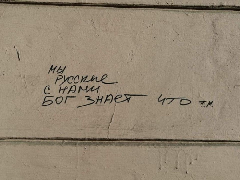Граффити на одном из домов на набережной Фонтанки в Петербурге. Весна 2022 года.