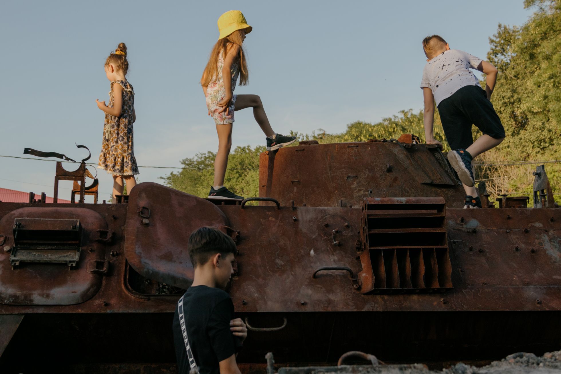 Снос разрушенных домов в оккупированном Мариуполе. Дети играют на подбитой российской технике в Одессе. Жители Константиновки делятся друг с другом питьевой водой