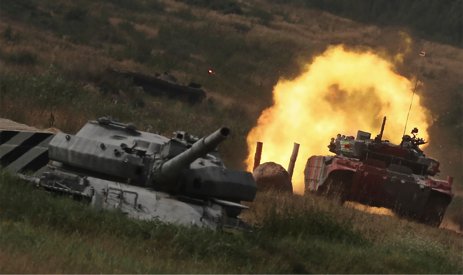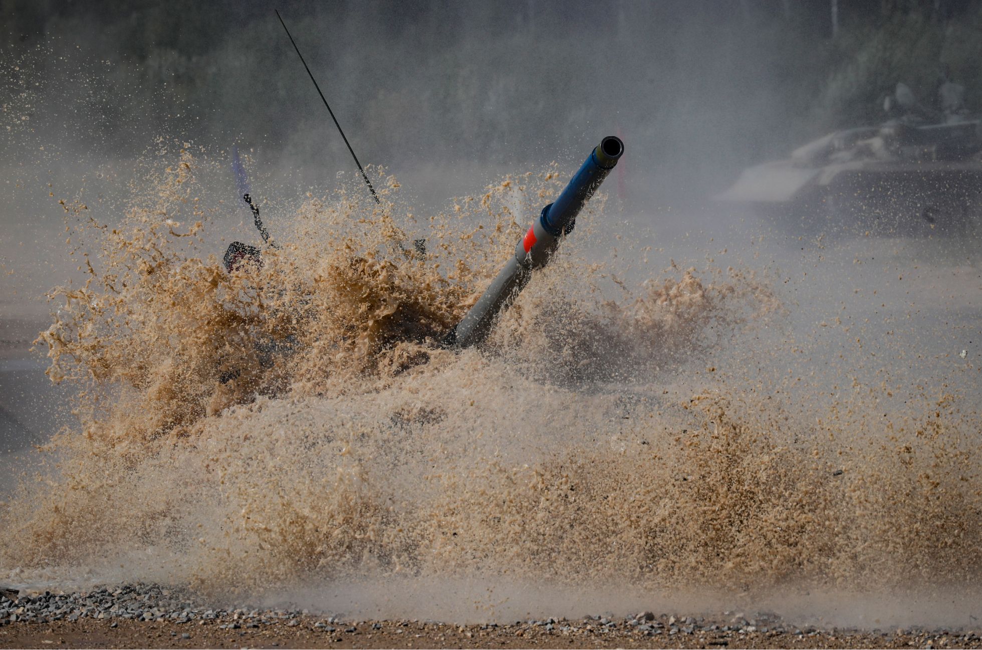 Как указано на официальном сайте, танковый биатлон — «прикладные состязания в искусстве вождения танка и точности стрельбы». Соревнования проводятся ежегодно с 2013 года на полигоне Алабино в Московской области в рамках Международных армейских игр. В этом году за победу соревнуется 21 команда из разных стран (ни одна из стран Евросоюза и США не участвуют).