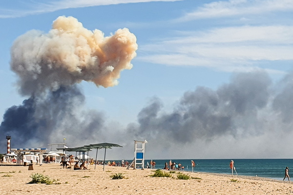 В Крыму вторую неделю происходят взрывы на военных объектах. В Севастополе регулярно срабатывает система ПВО, а 20 августа на крышу штаба Черноморского флота упал беспилотник. Губернатор Севастополя Михаил Развожаев поручил разместить в городе указатели, ведущие к бомбоубежищам, назвав это «учебной тревогой».