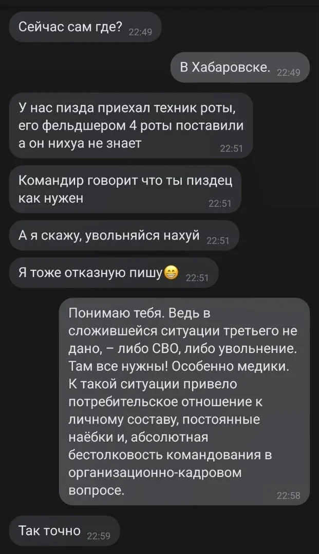 In Crimea, he turned around and flew back to Khabarovsk. Two days later he reached his unit and filed a report refusing to participate in the “special military operation.” Astashov is currently being discharged from the army.