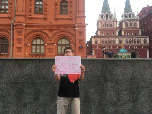 В Москве на Манежной площади задержали Михаила Суслина, проводившего одиночный пикет за дружбу России и Израиля и в поддержку организации «Сохнут», помогающей евреям репатриироваться. Об этом он сам сообщил ОВД-Инфо.