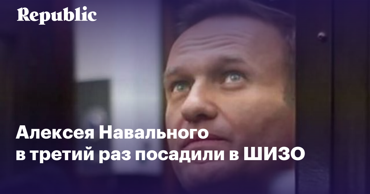 Оппозиционера Алексея Навального в третий раз отправили в ШИЗО. Об этом говорится на его странице в твиттере. По словам политика, в воскресенье вечером его выпустили, а в понедельник снова отправили в штрафной изолятор «и не скрывают, что и дальше я вылезать из этой дыры не буду».