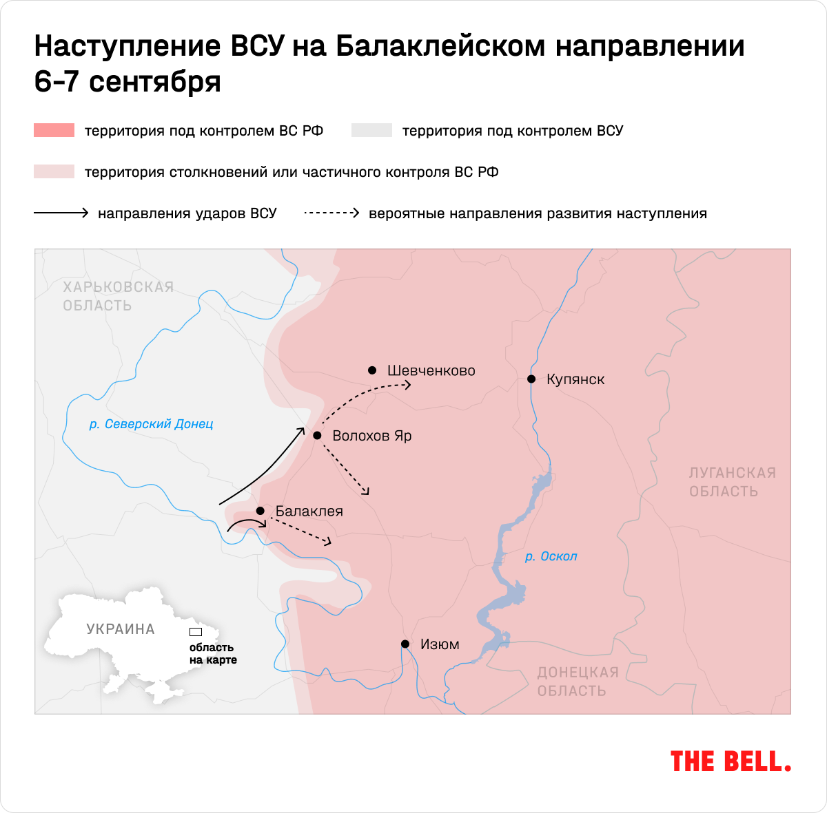 - Цели наступления понятны. Как минимум оно отвлечет силы и резервы ВС России от Донбасса, если не отодвинет фронт от Харькова и Славянска. В варианте максимум, если ВСУ смогут дойти до Купянска — крупного железнодорожного и логистического узла на рубежной реке Оскол, — они практически перережут снабжение российской группировки под Изюмом. Это скажется на всем северном участке фронта.