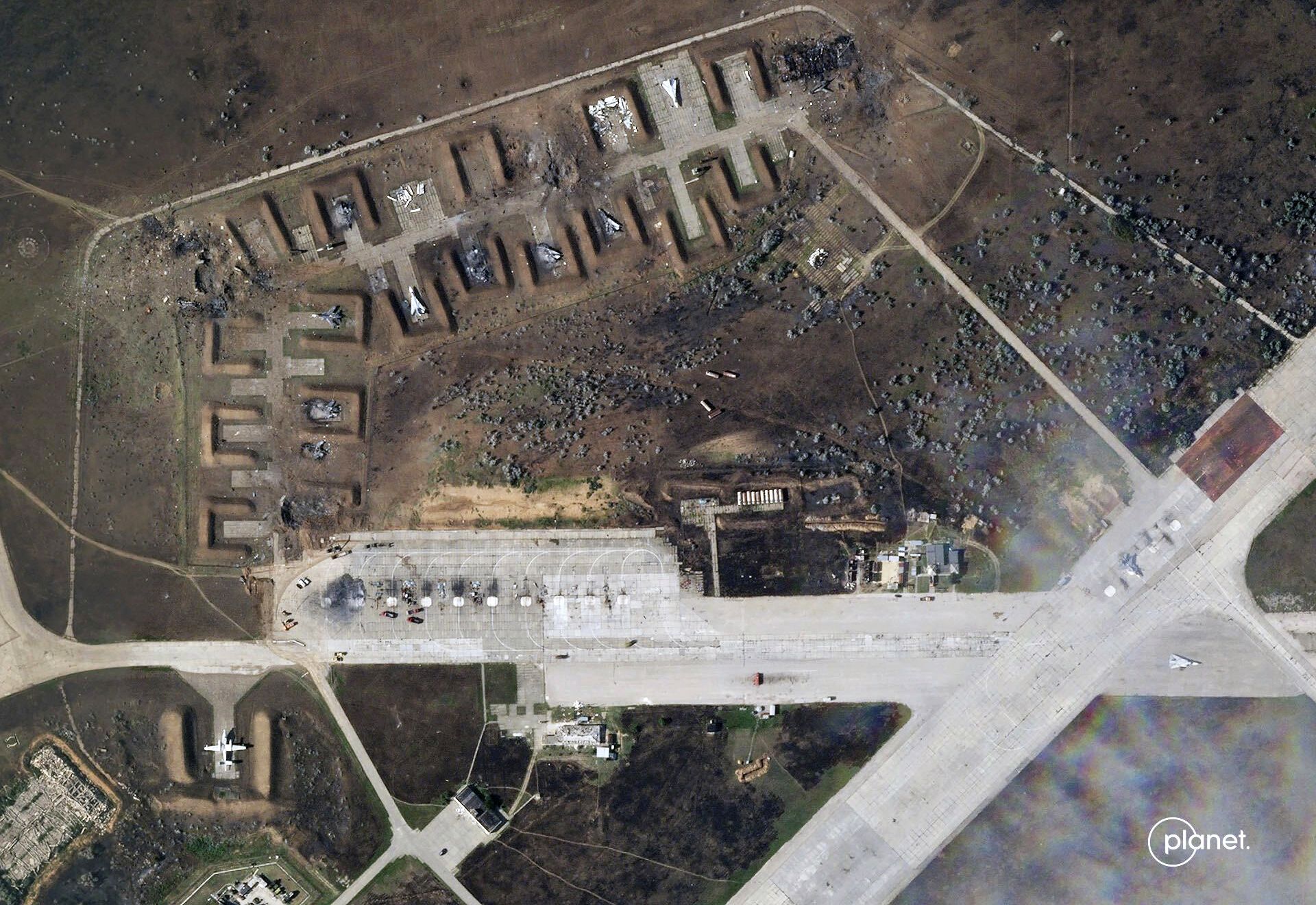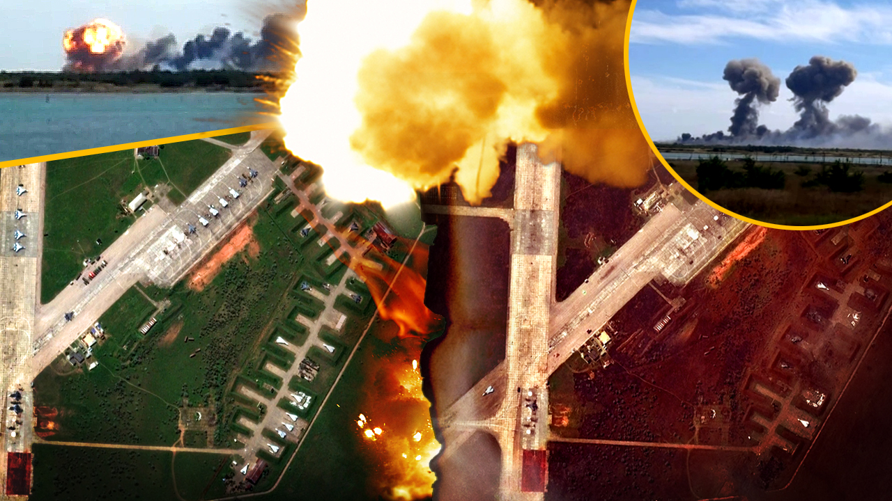 На этом аэродроме базировался 43-й отдельный морской штурмовой авиаполк Черноморского флота РФ. На космических снимках, сделанных за день до происшествия, видно, что на аэродроме стояло два десятка самолетов – преимущественно это были истребители Су-30СМ, разведчики Су-24МР, несколько вертолетов и один Ил-76. Но на одном из видео видно, как Ил-76 идет на взлет прямо во время взрывов.