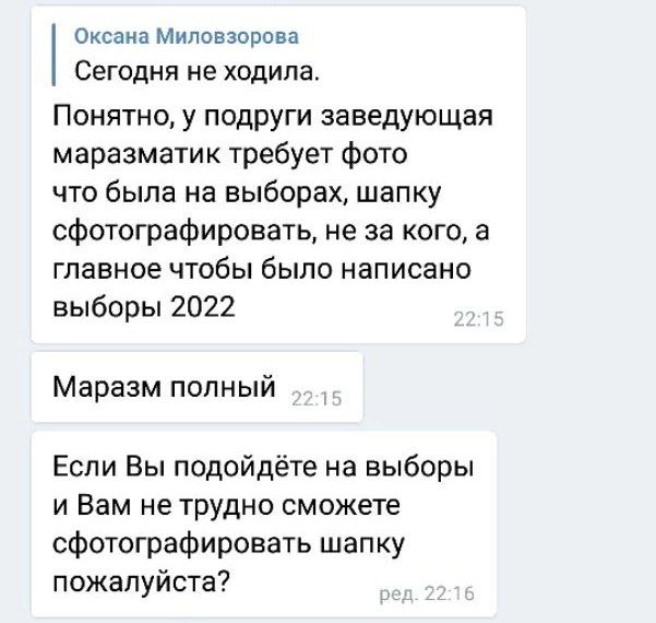 Голосование в этом году соответствовало духу военного времени. Из-за репрессий движение «Голос» не смогло обучить и направить на участки независимых наблюдателей, а те, что аккредитовались от Общественной палаты, вместо поиска нарушений занимались рассылкой бессмысленных постов в соцсетях.