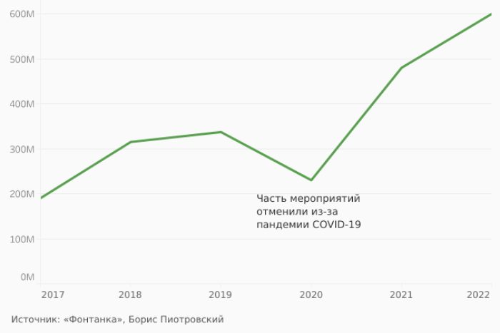 «Бумага» изучила, сколько власти Петербурга тратили на украшение города к Новому году в предыдущие годы. Оказалось, что, как правило, Смольный ежегодно увеличивает расходы: за последние пять лет траты увеличились как минимум в три раза. Если в 2017 году власти потратили 170 миллионов рублей, то в 2022-м — 600 миллионов рублей.