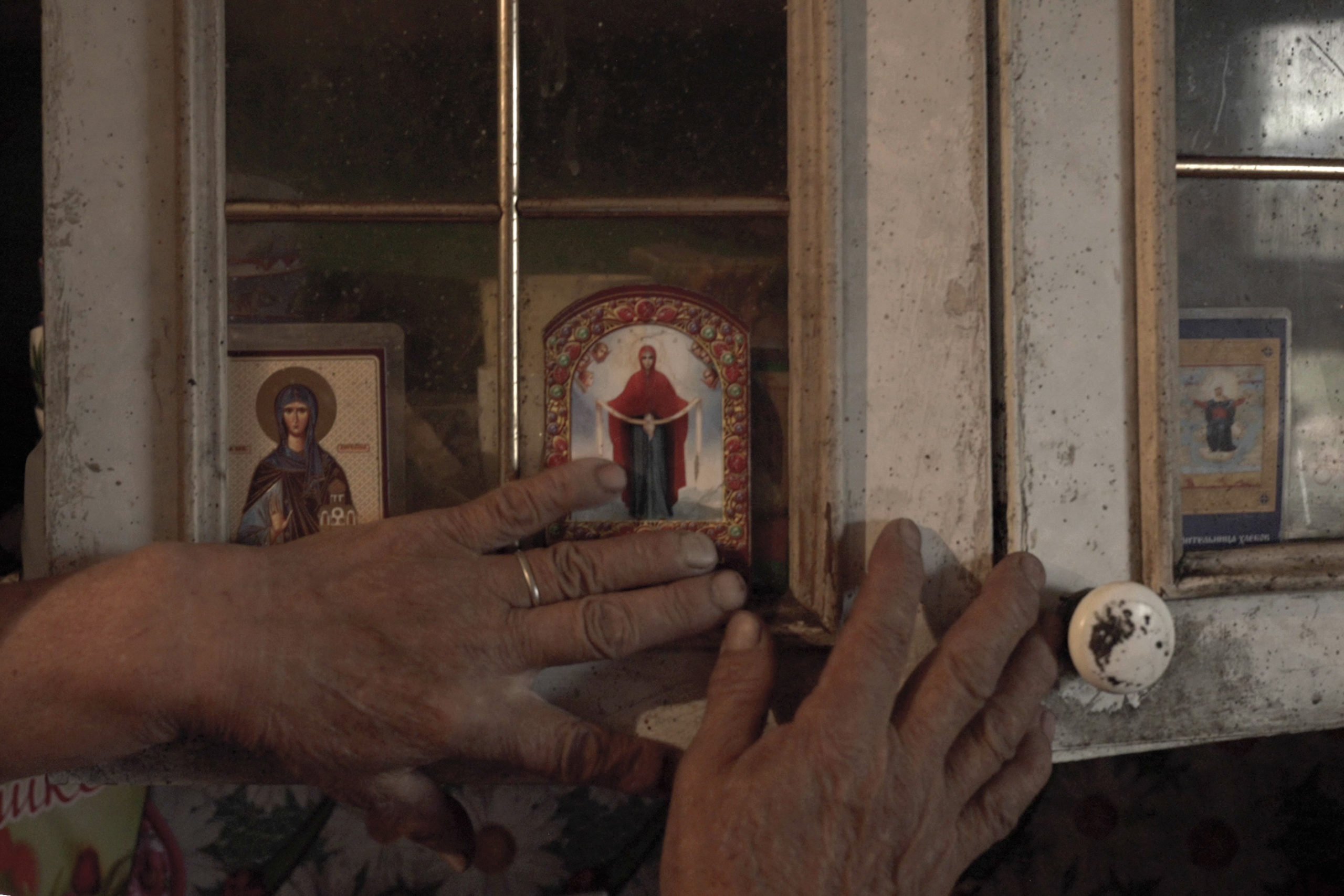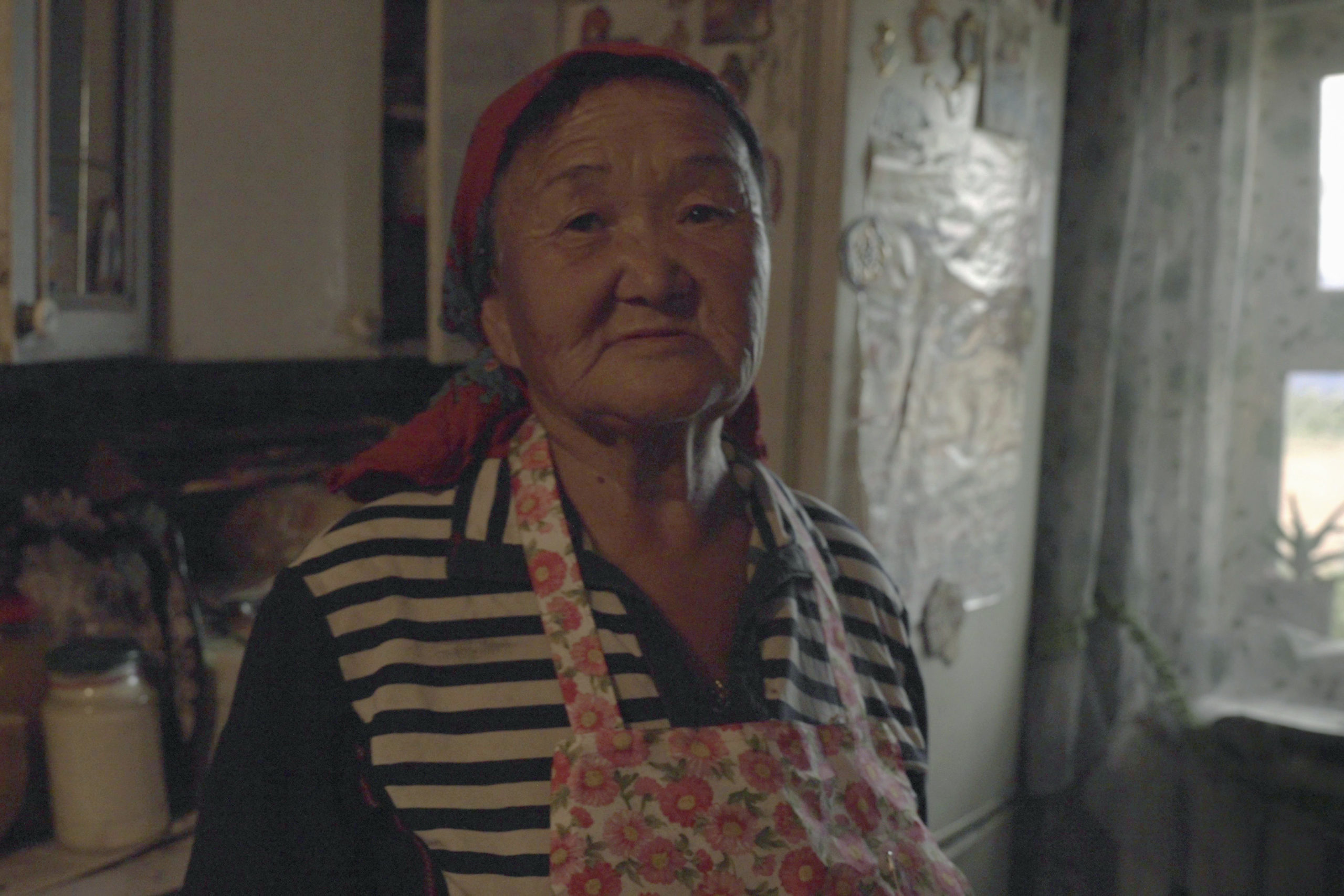 Молчаливая внучка Айгыс — еще школьница — сидит за тарелкой борща. Надежда в полосатой кофте и красном платке нарезает хлеб ножом с рукояткой цветов российского флага. Кипит электрический самовар, крашеный под гжель. В кухне полумрак. На стенах обои с маргаритками, возле стола из пола торчит водяная колонка, на серванте — иконы, картинка с блондинкой и голубем, бумажные розы и маленькое фото погибшего внука. Надежда стесняется скромной обстановки — боится, что «толстосумы будут смеяться». Больше всего эта женщина, отдавшая государству и свою жизнь, и жизни всей своей семьи, страшится показаться бедной. Она особо подчеркивает, что мяса у нее вдоволь, что сыновья и внуки идут «в контрактные солдаты» по зову сердца, не за деньгами.