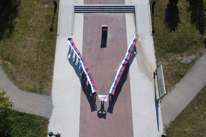 В Иркутске членов «Молодой гвардии» выстроили буквой V прямо на Иерусалимской горе, говорится в сообщении пресс-службы организации, поступившем Тайге.инфо. При этом на этой горе в центре Иркутска было старое кладбище, которое разорили при большевиках в 1930-х, а на его месте открыли парк атракционов. Часть могил все-таки сохранились (захоронения декабриста Иосифа Поджио и писателя Михаила Загоскина являются памятниками федерального значения).