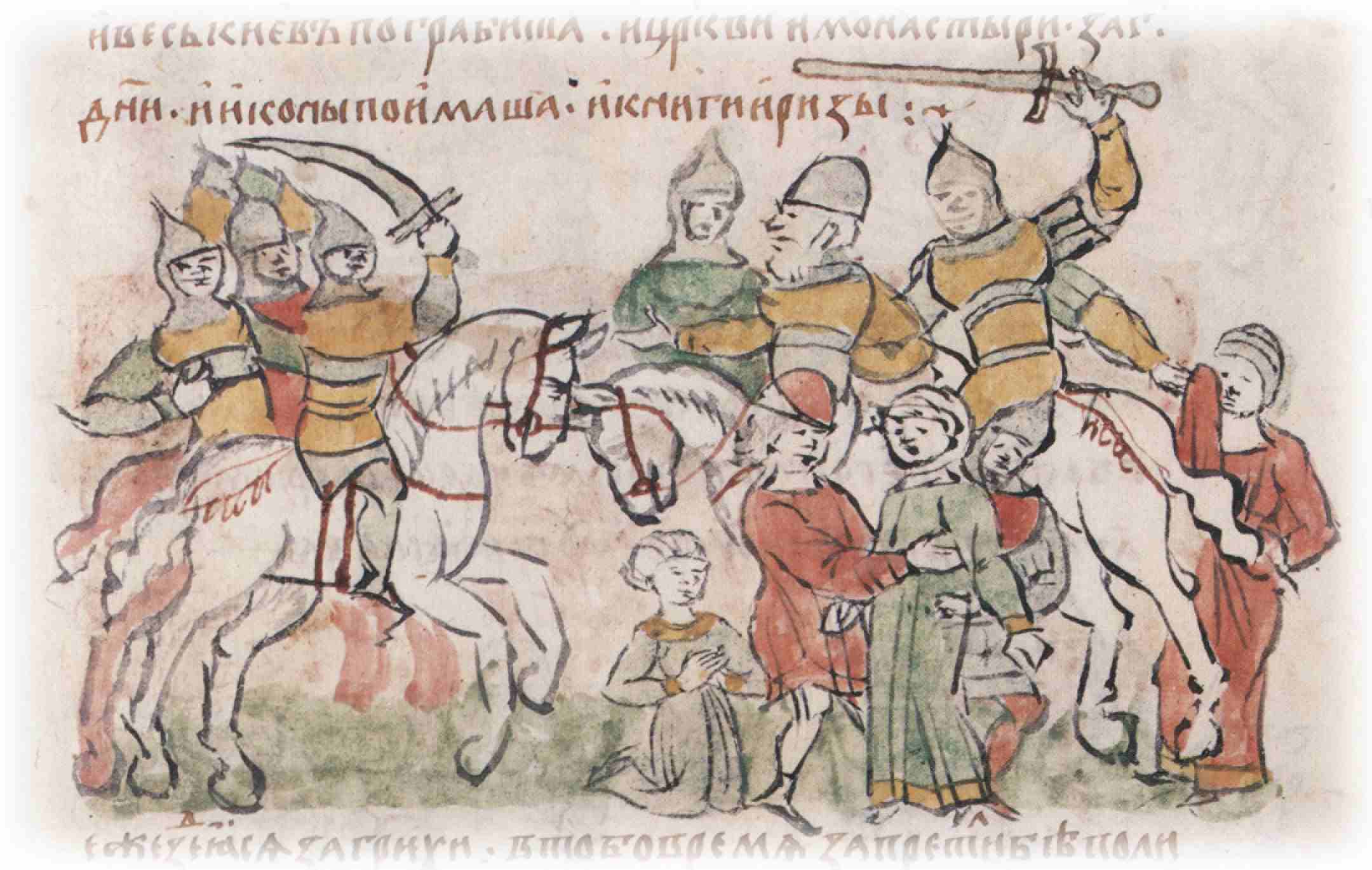 Поход владимирского войска на Киев, 1169 год. Миниатюра из Радзивиловской летописи, конец XV ст.