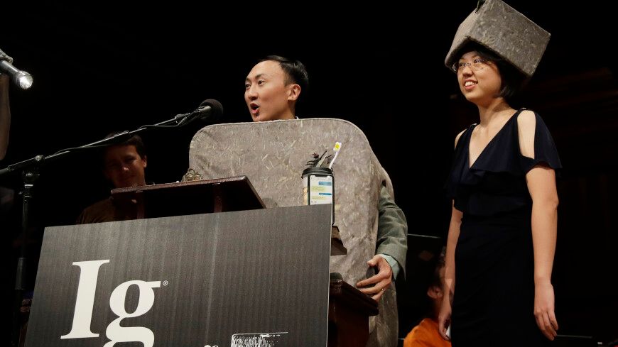 Всем лауреатам традиционно вручили копии купюр достоинством 10 трлн зимбабвийских долларов, валюты вышедшей из обращения. Вместо нобелевских медалей победителям вручали бумажные цилиндры, символизирующие "контейнер для хранения всех имеющихся у них знаний".
