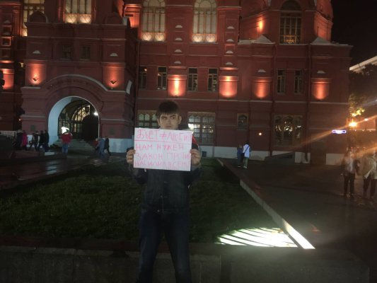 Молодого человека задержали, но по доставлению в отдел полиции по Китай-городу сразу же отпустили. На него не составляли протокол, полицейские даже не стали изымать у него плакат.