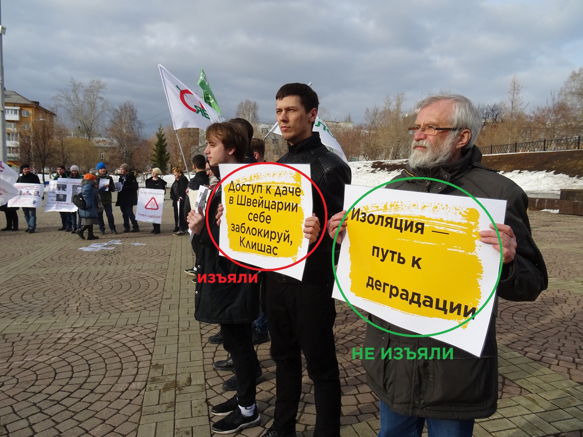 – Ничего серьезного они не изъяли, что могло бы быть отнесено к делу Пономарева, – говорит Владислав. – Для чего-то забрали два старых плаката. С этими плакатами мы выходили в согласованный пикет против законопроекта Клишаса и Крашенинникова о суверенном интернете еще в начале 2019 года. Такое ощущение, что плакаты изъяли "для галочки".