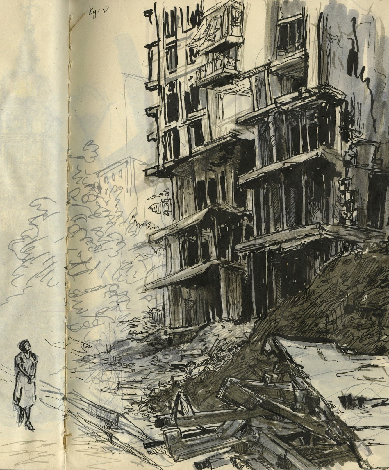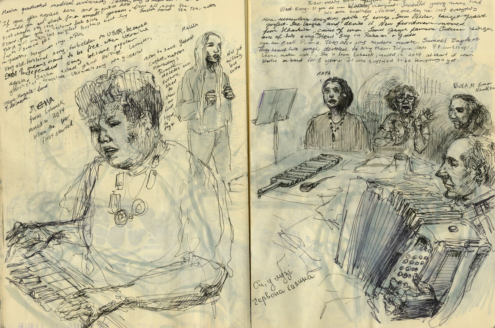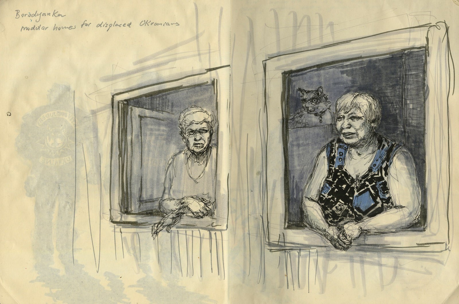 Художница Молли Крэбэппл занимается журналистикой уже десять лет. Она делала рисованные репортажи с базы Гуантанамо и войны в Сирии, из Пуэрто-Рико после урагана «Мария» и лагерей беженцев в Греции. В августе она отправилась в Украину по заданию New York Review of Books. «Медиазона» перевела получившийся материал.