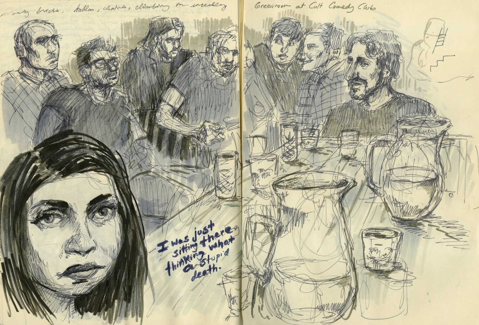 За кулисами стендап-клуба Cult. Львов, 10 августа. Иллюстрация: Молли Крэбэппл / New York Review of Books