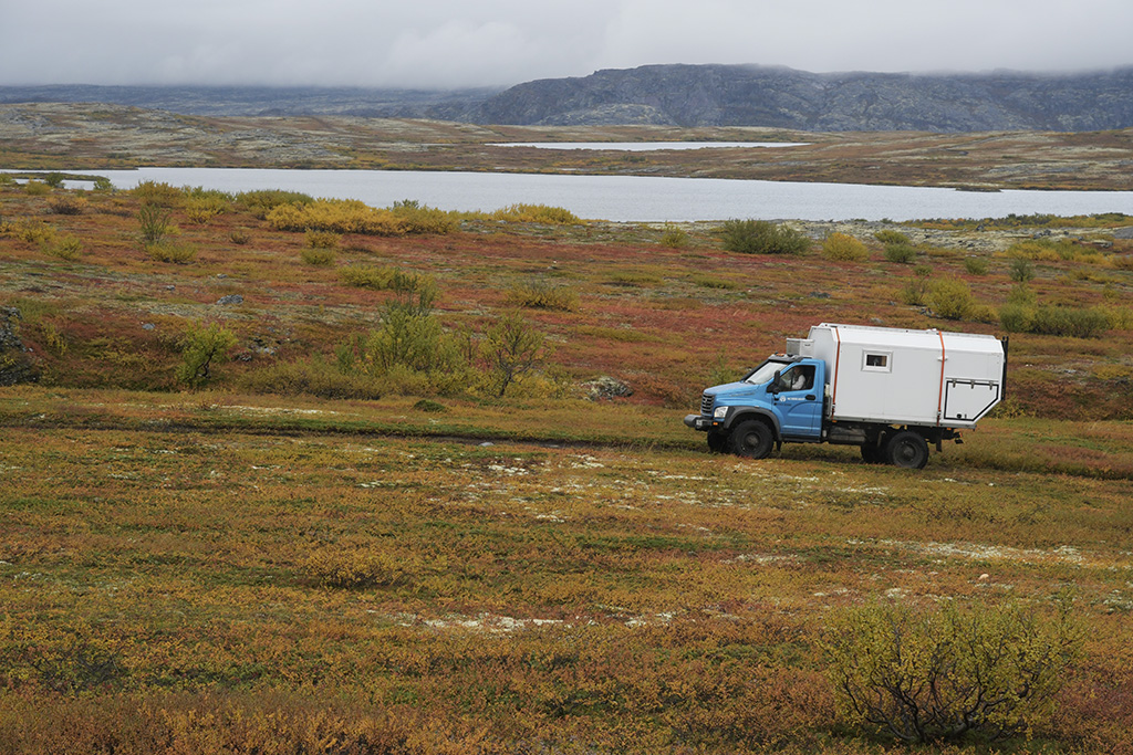 Наш экспедиционный кемпер в осенней тундре на Среднем.