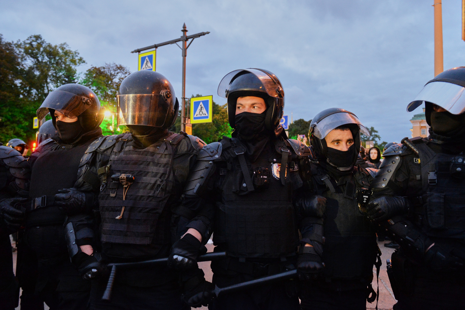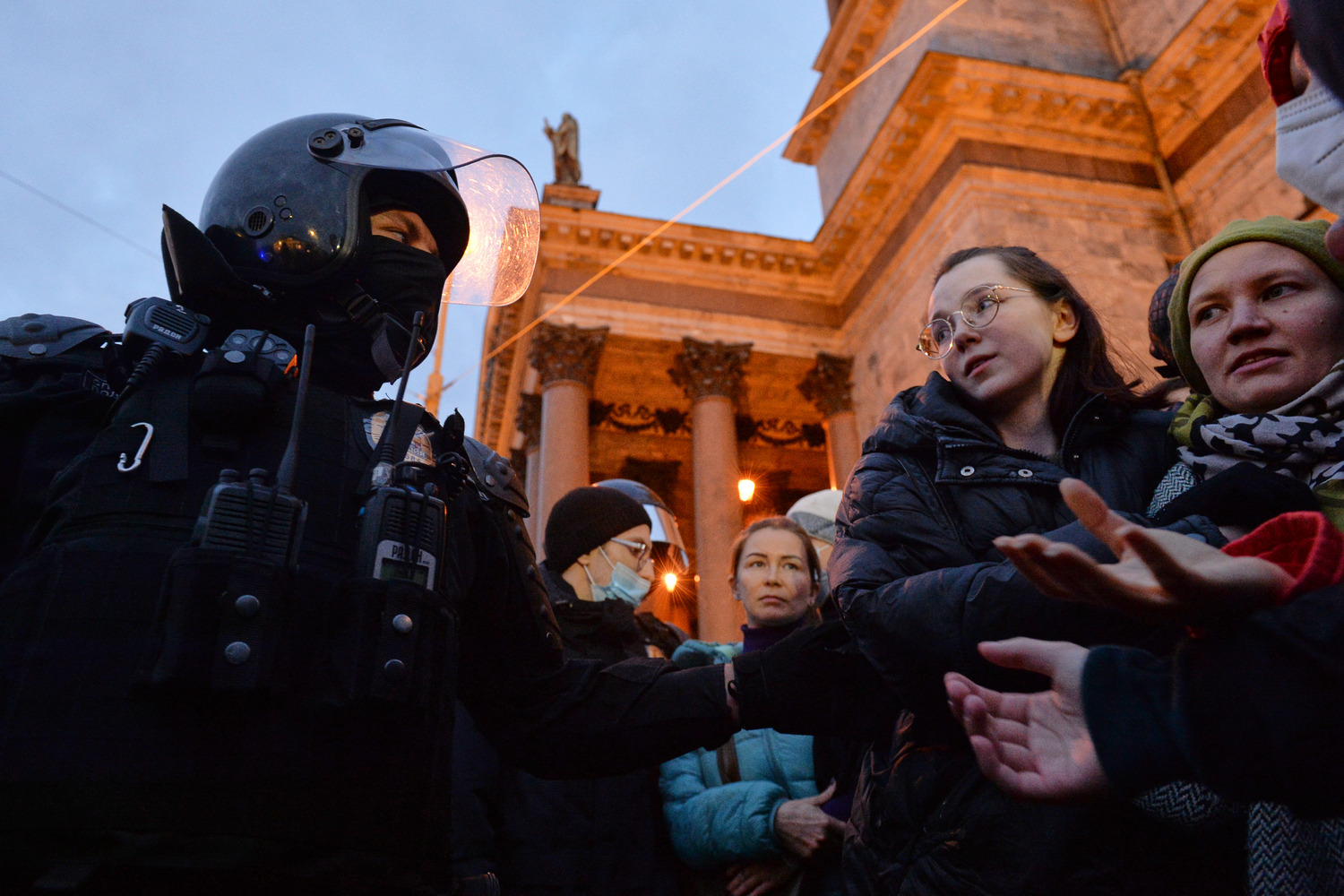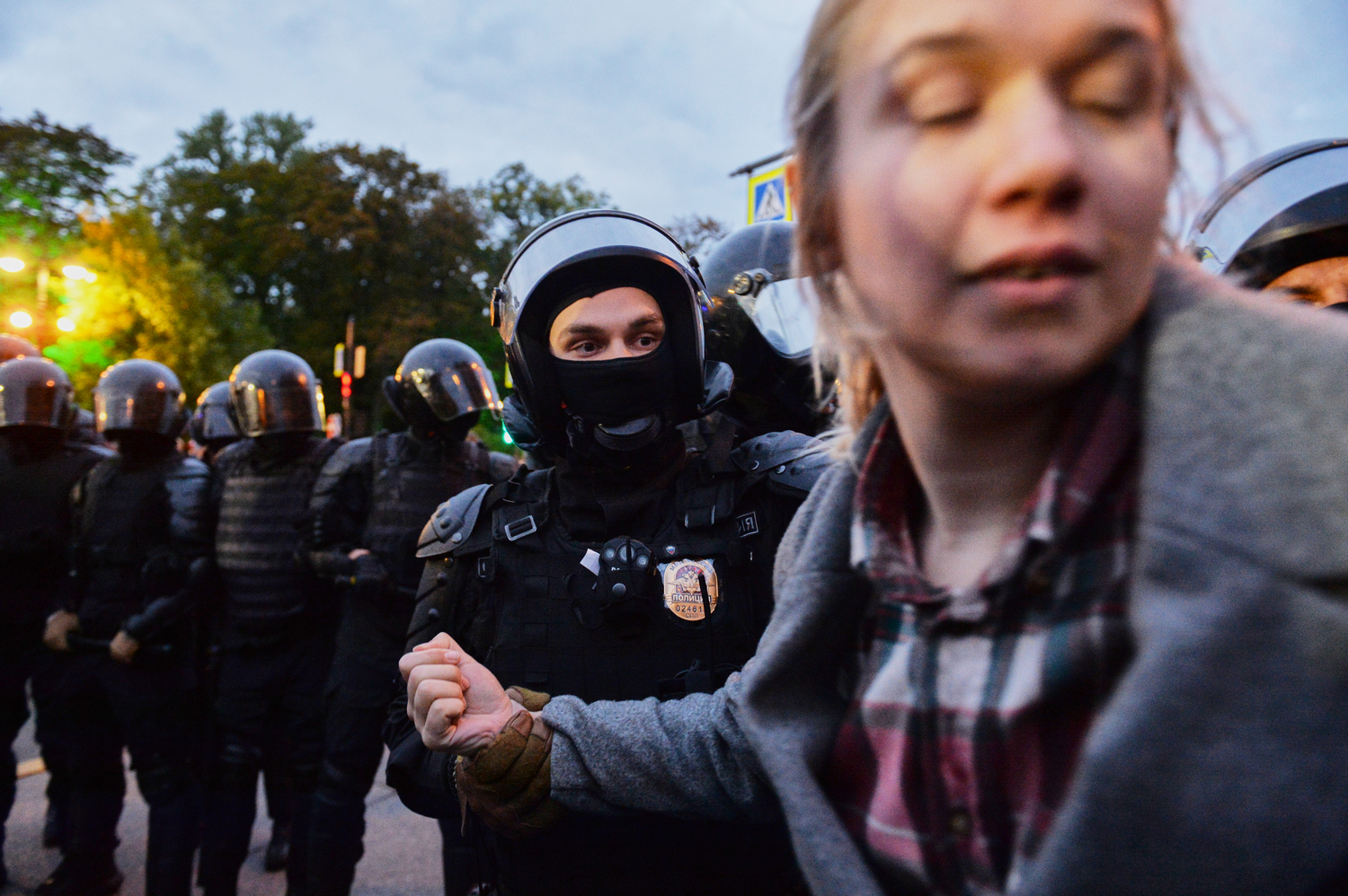 ОМОН активно задерживал участников и участниц, бил их дубинками, волок по земле и ставил на колени. По данным «ОВД-Инфо», в Петербурге задержали минимум 444 человека.