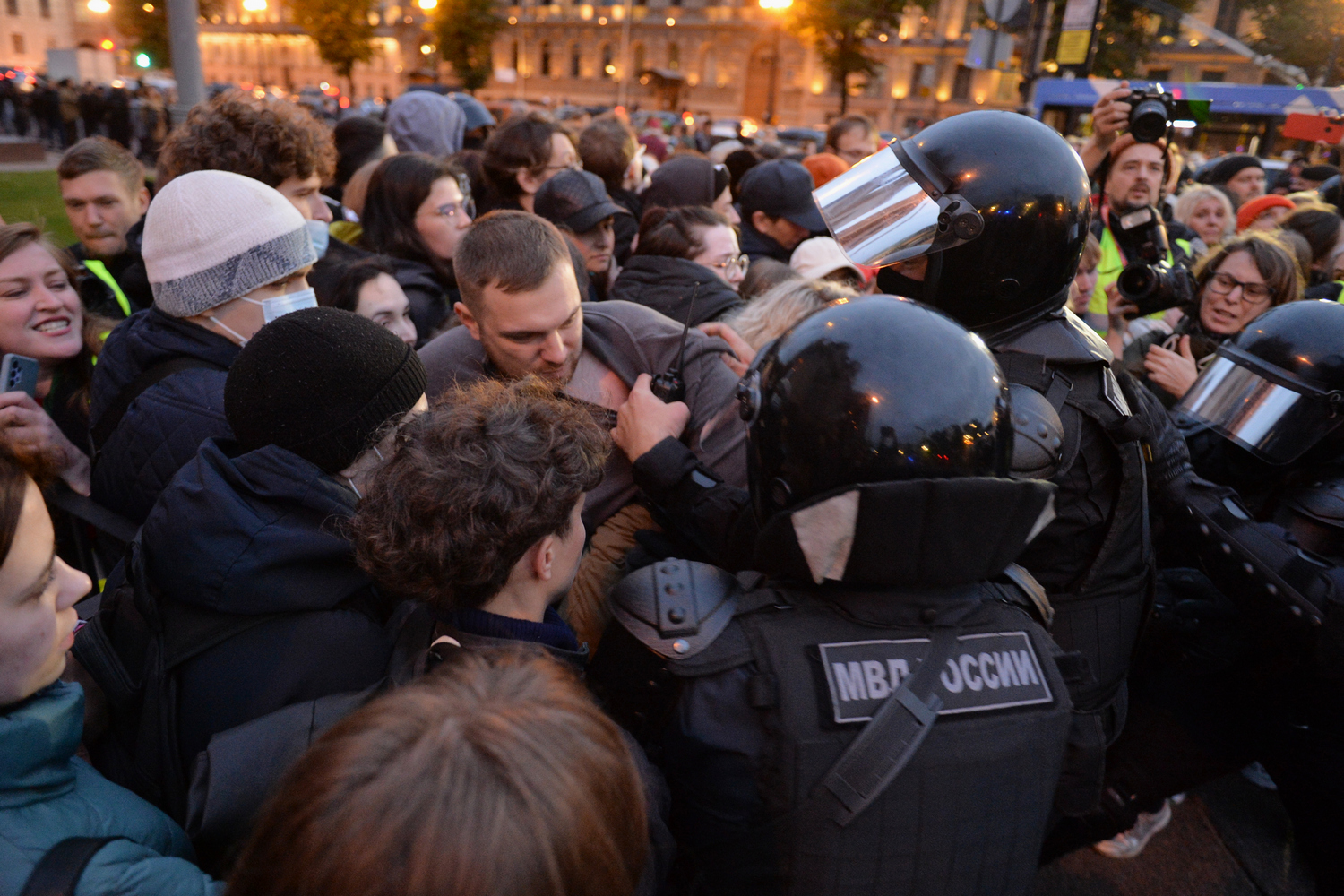 Вечером 21 сентября в Петербурге, как и в других городах, прошла акция против мобилизации россиян на войну в Украине. Акцию объявила группа «Весна». Протестующие собрались к 19:00 на Исаакиевской площади.