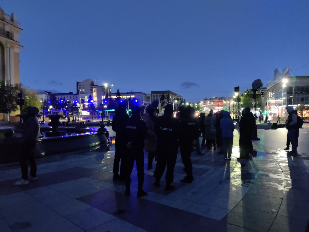 По словам очевидцев, первое задержание произошло в 20 часов вечера. При этом площадь Ленина в Новосибирске автозаки и спецмашины ОМОНа окружили, по словам жителей, еще с 16 часов. К вечеру там собралось около 30 жителей.
