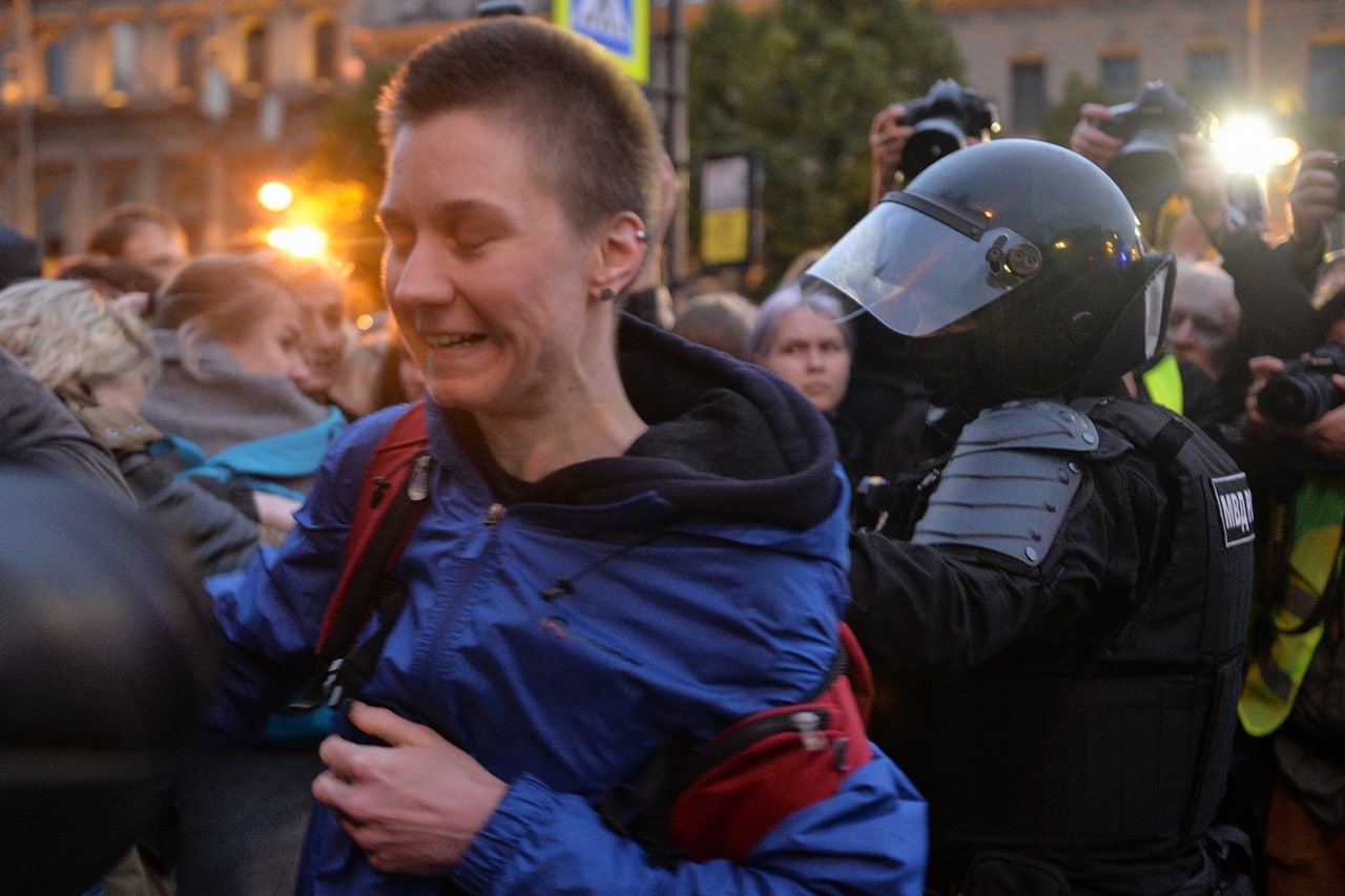 Этот митинг [против мобилизации] был лучше организован [чем другие протесты после марта 2022 года]. Мы собрались у Исаакиевского собора в 19:00. Нас сразу же взяли омоновцы в кольцо. Мы сразу же встали в сцепку, чтобы нас не хватали по одному. Силовики, стоявшие ближе всего к нам, начали просто выдергивать людей за шкирку. Тех, кто держался [за других людей], они били по рукам дубинками. Я сначала держалась, потом меня ударили пару раз. [В таких случаях] сопротивляться особо не следует — понятно, что могут завести что-то пострашнее, чем административка.