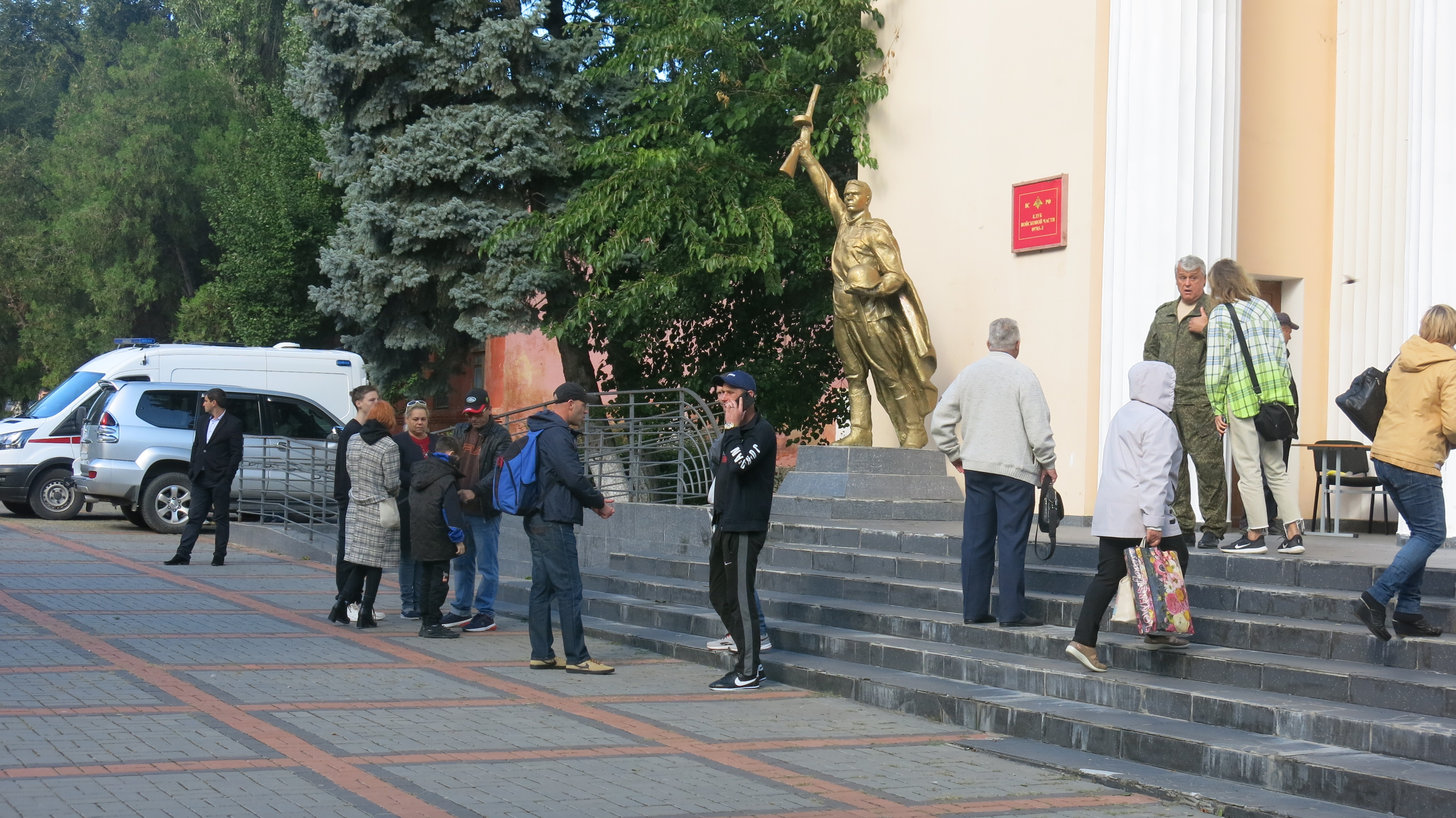 Вместе с мобилизованными пришли их родственники, которые долго прощались со своими близкими. Рядом со зданием Дома офицеров флота дежурят автомобили полиции, «скорой помощи».