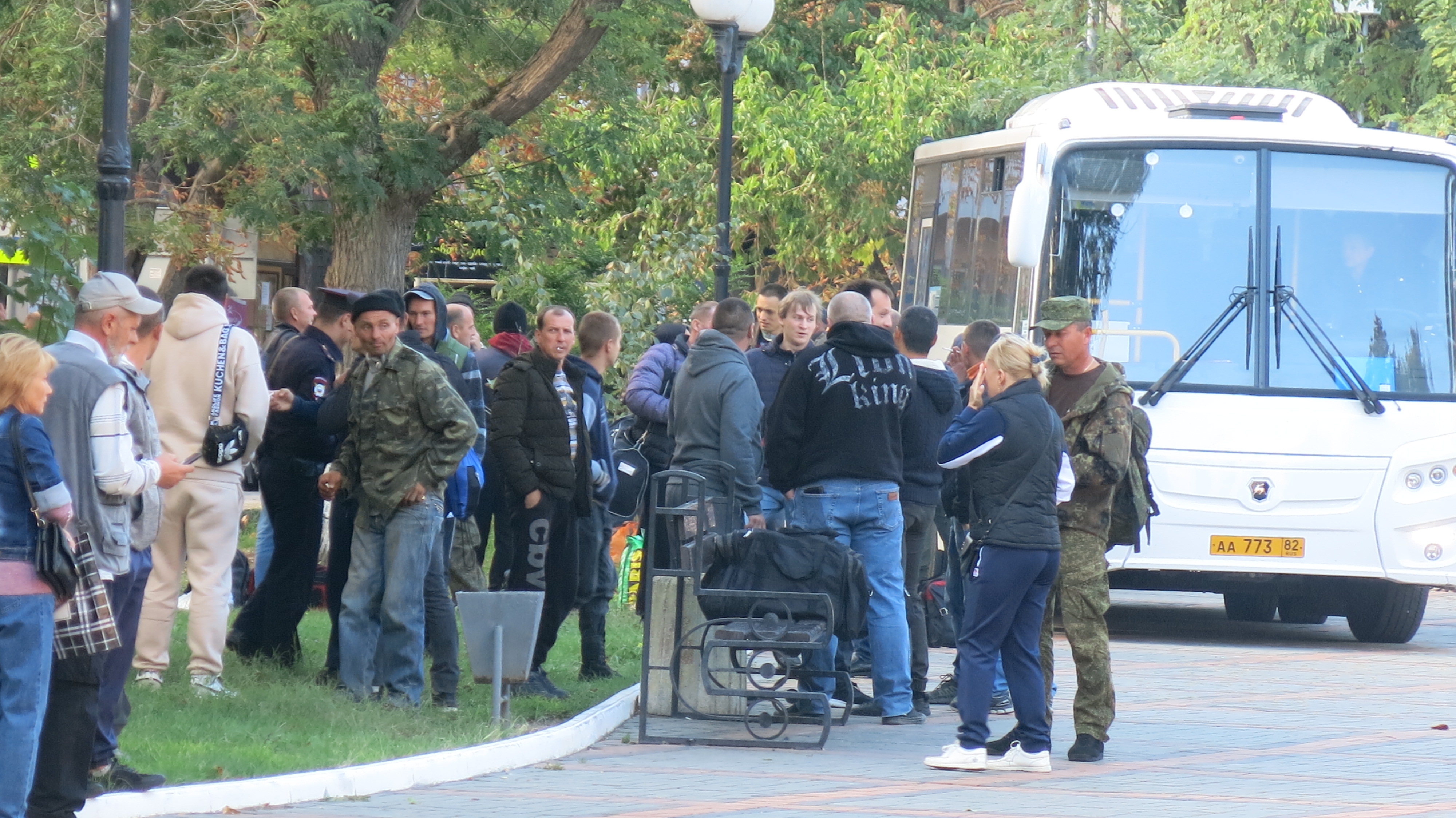 В Феодосии в пятницу 23 сентября в рамках частичной мобилизации, объявленной Россией, сформировали группу местных жителей для отправки на войну с Украиной.