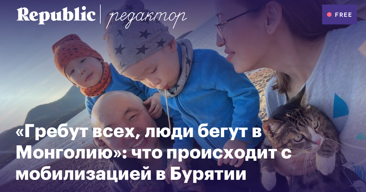 В российских регионах развернута военная мобилизация. Судя по многочисленным свидетельствам, очень активно кампания проходит в Бурятии — в этом отдаленном и бедном регионе повестки разносят даже по ночам и даже тем, кто не относится к категориям граждан, подлежащих отправке на фронт. Фарида Курбангалеева поговорила с людьми, которые лично ощутили на себе желание российских властей отправить на войну в Украину как можно больше народу. А также с главой правозащитного фонда «Свободная Бурятия», по мнению которой происходящее может привести к непредсказуемым последствиям.