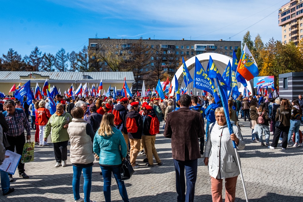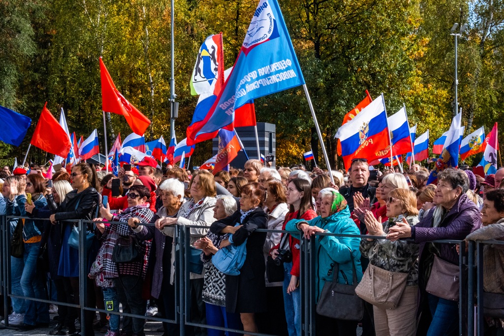 В Новосибирске власти провели митинг в поддержку «референдумов» о присоединении к РФ самопровозглашенных ЛНР и ДНР, а также подконтрольных ВС РФ территорий Херсонской и Запорожской областей Украины. На него собрали представителей «Единой России», ЛДПР, активистов «НОД», студентов близлежащих вузов, а также ТОСы. Фоторепортаж Тайги.инфо.