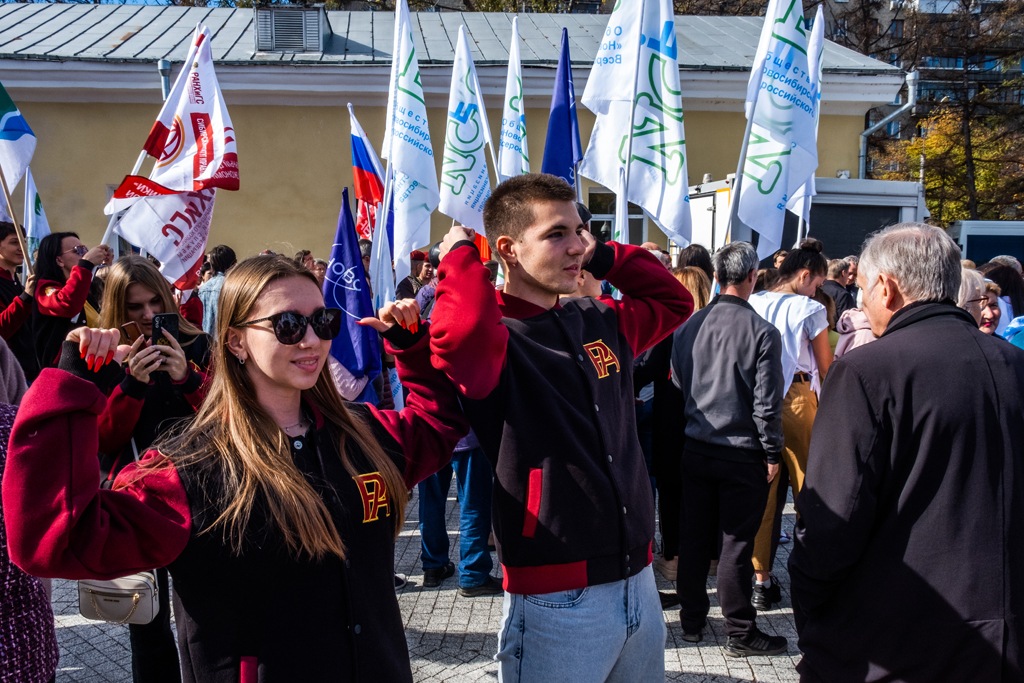 Студентов и партийцев собрали на провластную акцию в Новосибирске. Фото
