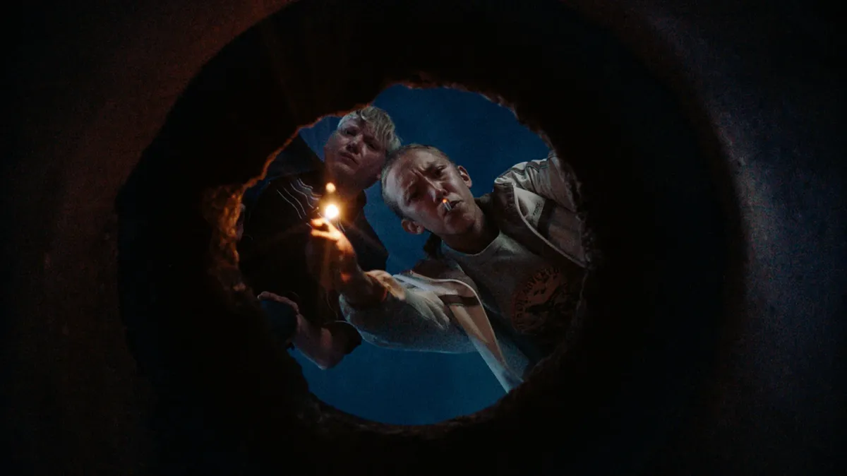 Поначалу вы и не догадаетесь, что это комедия, пусть даже черная или серо-буро-малиновая. Место действия — маленький городок, затерявшийся среди гор в Карачаево-Черкесии. Все начнется с черноты: смотрим из темноты наверх — в круг небесного света. Словно Малевич наоборот. Оказывается, смотрим из люка… глазами ежика. Двое незнакомцев встретились, услышав шорох, заглядывают в люк. Это студент Саня Сосланов со знаковым прозвищем Сос (Лев Зулькарнаев) и неприкаянный белобрысый Олег (Павел Ворожцов). Из люка они вытаскивают упавшего ежа.