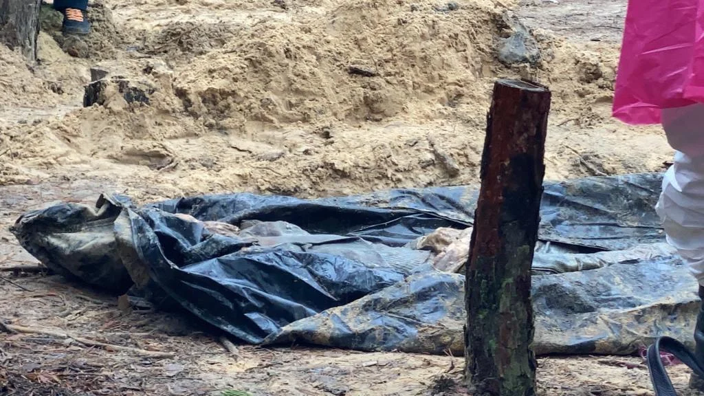 Это захоронение находится в сосновом лесу. Работы продолжались непрерывно, на протяжении недели, под дождем. За тем, как поднимают тела из земли, наблюдали Генпрокурор Украины Андрей Костин и многочисленные европейские дипломаты, а также журналисты. Я тоже видела, как это происходило.
