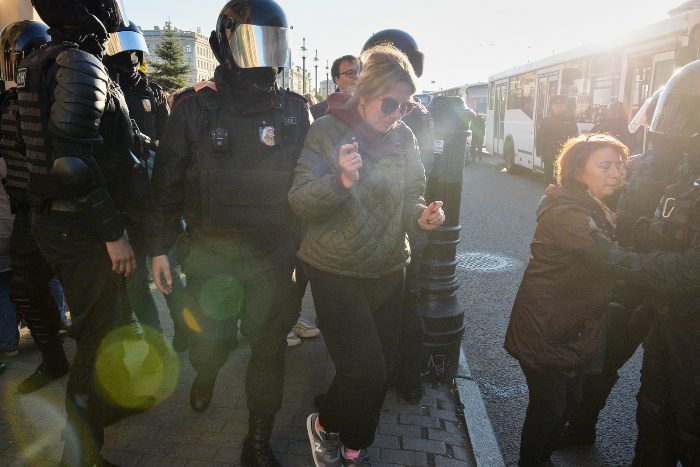 По данным «ОВД-Инфо» на 18:33, в Петербурге были задержаны не менее 115 человек, всего в России — не менее 628 человек. К 20:20 у правозащитников была информация о 126 задержанных в Петербурге и 707 задержанных по всей России.