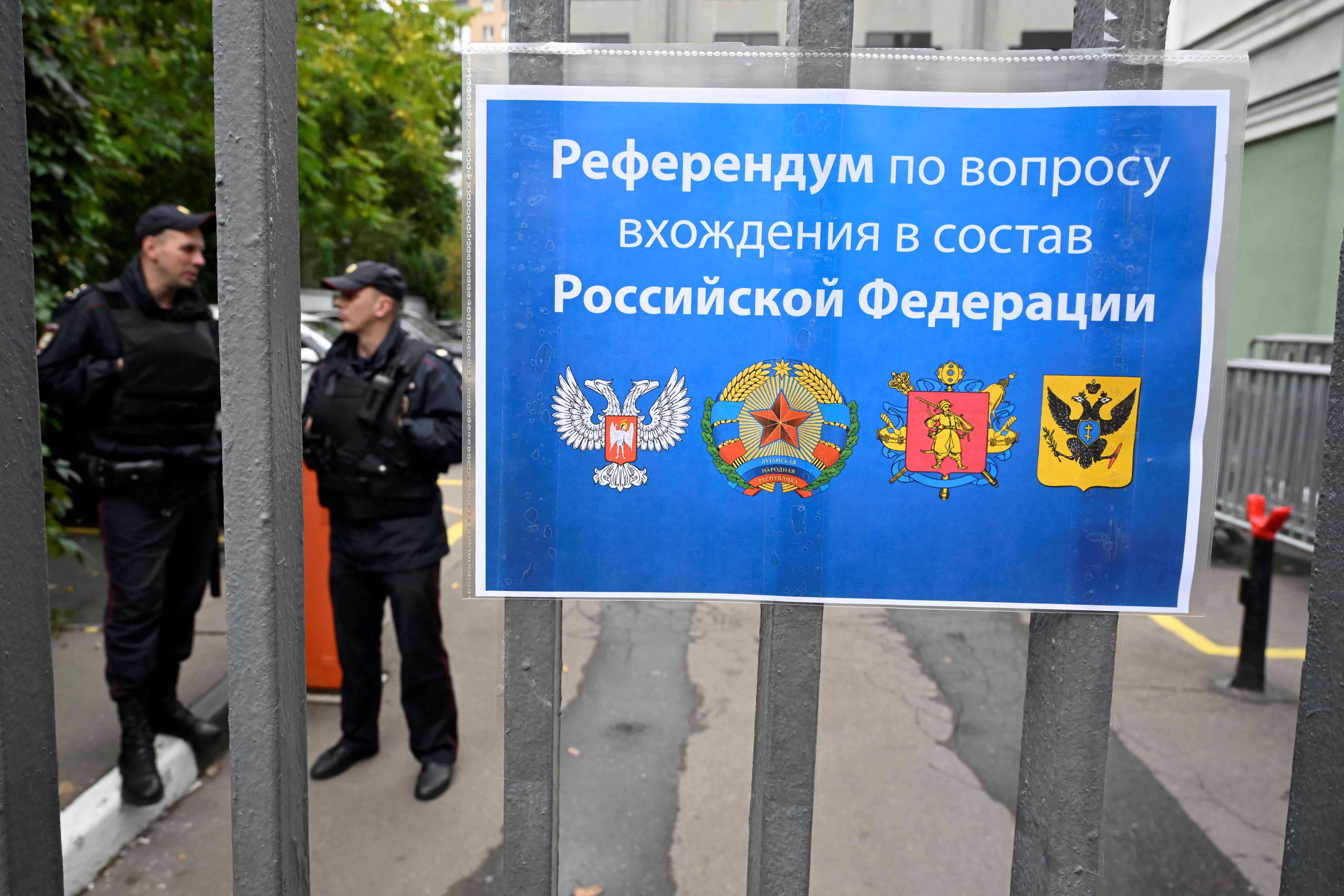 Глава МИД России Сергей Лавров, выступая на Генеральной Ассамблее ООН в Нью-Йорке 24 сентября, заявил, что жители этих территорий голосуют за то, чтобы уйти в Россию вместе с землёй.