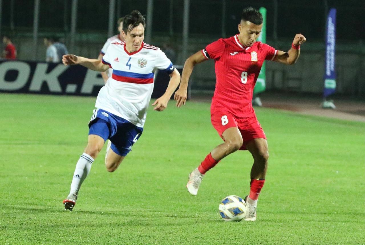 В Бишкеке российская команда обыграла сборную Кыргызстана со счётом 2:1, причём победный гол Даниил Уткин забил за минуту до конца матча.