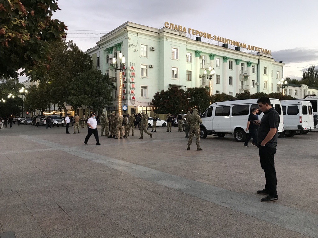 По данным "Черновика", на площади им. Ленина в Махачкале, которая оцеплена силами полиции и Росгварии, выборочно задерживают молодых людей и проверяют их телефоны, выясняя, записывали ли они видео с протестами.