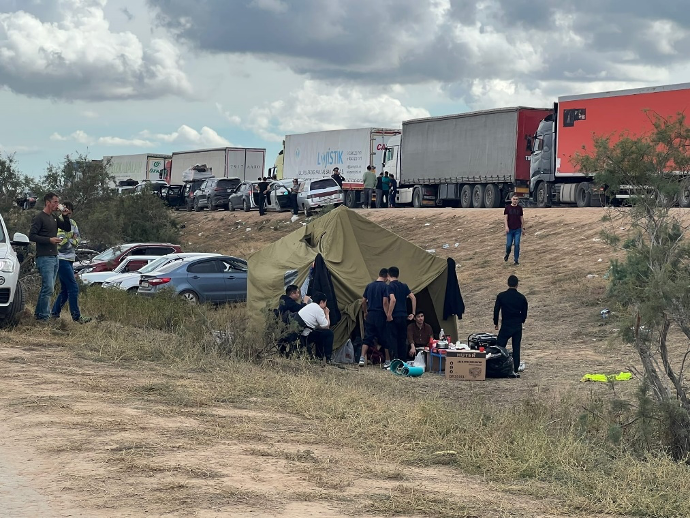 "Стоим тут 32 часа. Нам главное – оказаться в Казахстане. У меня санкции введут на компанию, а в Казахстане есть офис от работы. Ночью тут нужно спать по очереди, потому что полицейские мониторят машины", – предупредил Дмитрий из Ростова-на-Дону.