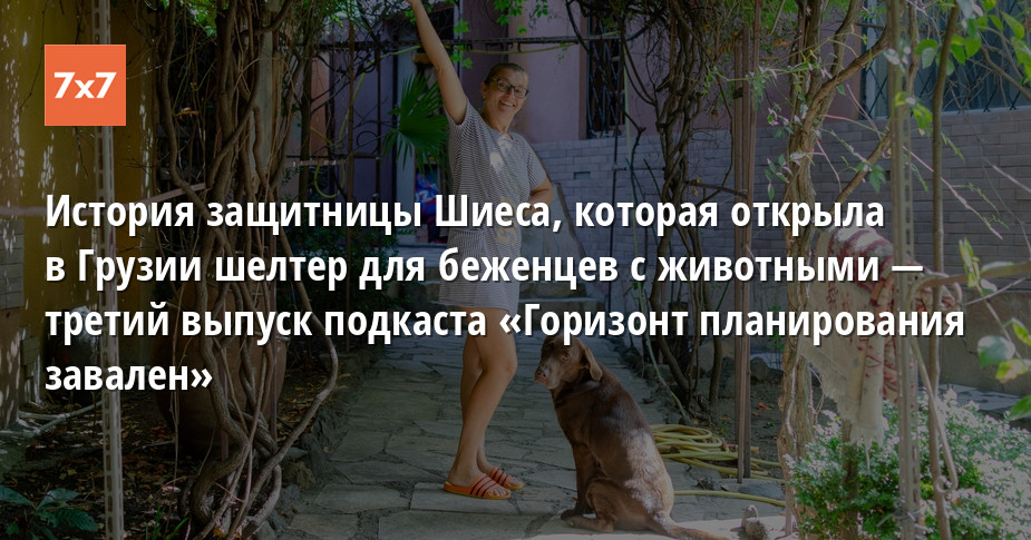 Героиней третьего выпуска подкаста «7х7» «Горизонт планирования завален» стала активистка Шиеса Анна Степанова. Летом 2022 года она сбежала в Грузию, чтобы не стать фигуранткой уголовного дела. В Тбилиси Анна открыла шелтер для мигрантов, которые переезжают за границу с животными. Журналист Максим Поляков побывал там.