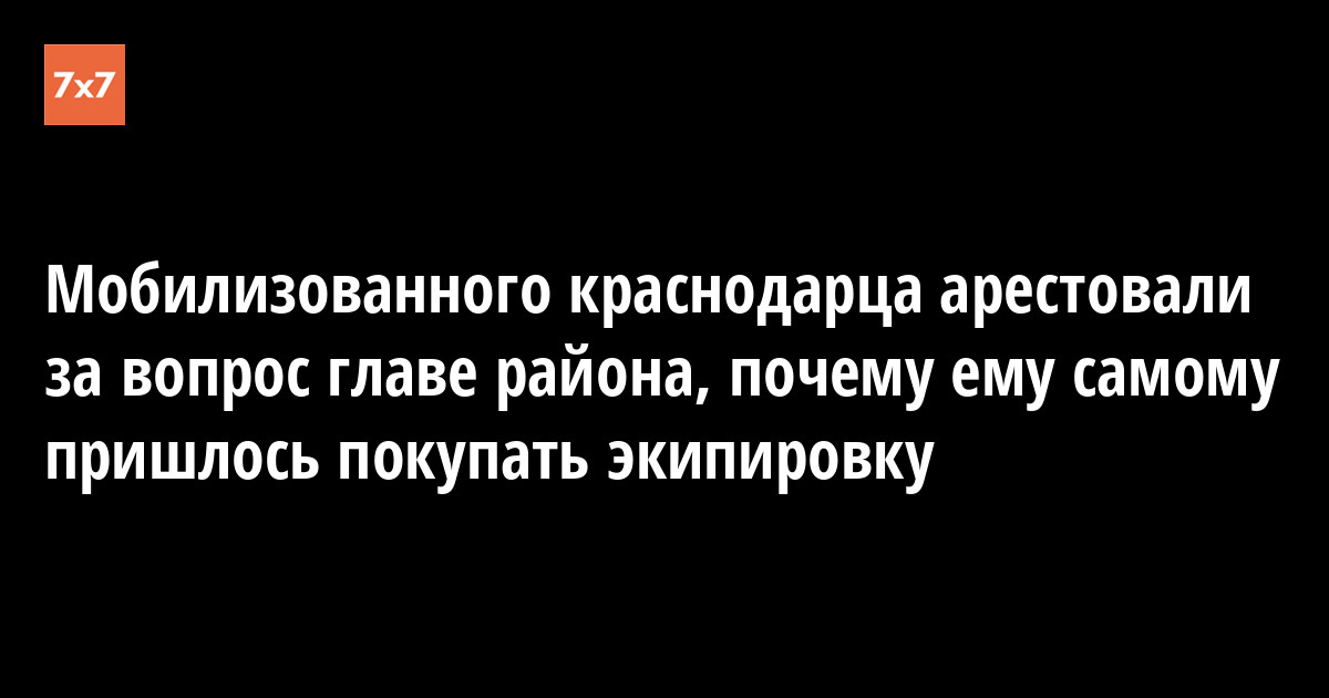 Мобилизованного краснодарца арестовали за вопрос главе района, почему ему самому пришлось покупать экипировку. На прощании с мобилизованными Артём Яковенко обратился к главе Красноармейского района Юрию Васину. Он хотел узнать, какую помощь окажут его семье и почему ему не выдали экипировку. За это Васин назвал его «треплом и предателем».