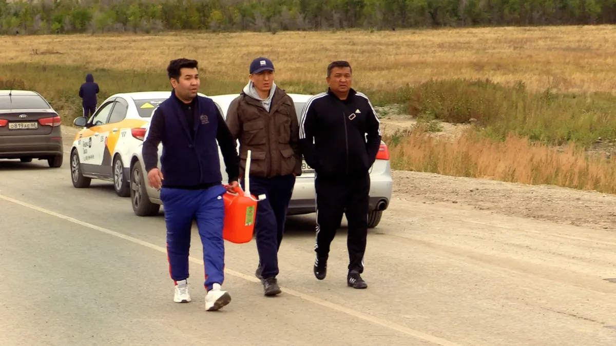 На обочине сверкает мигалками машина ГАИ. По ночам, когда спекулянты прорывают очередь, занимая места на завтра, полицейские почему-то исчезают. Люди из пробки организовали народные дружины для защиты от «полевиков» (таксистов здесь так называют за то, что они подъезжают к трассе по степным дорогам). «Вчера собрались толпой, с каждой машины по мужику. Поставили блокпосты на встречке и на обочине. Дежурим: если кто-то заснул за рулем, бежим, стучим в окошко, иначе образуется разрыв и кто-нибудь влезет», — рассказывает крепкий мужчина в рыбацком костюме.