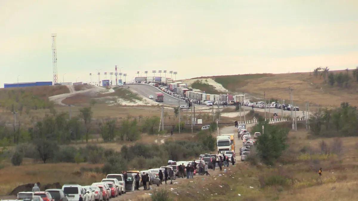 На саратовском участке границы с Казахстаном люди живут в машинах по трое суток. За проезд вне очереди спекулянты берут больше 100 тысяч рублей с человека.