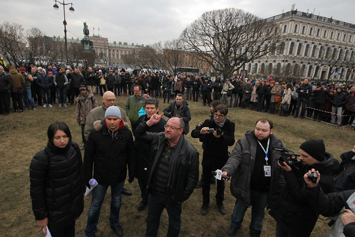 On March 1, 2014, Putin requested approval by the Federation Council, the Russian Parliament’s upper chamber, for deployment of the Russian Army on Ukrainian territory. Pivovarov was among the first politicians in Saint Petersburg to react. Together with Maxim Reznik, he announced the creation of an “anti-war committee” on the same day. However, although Pivovarov and Parnas participated in anti-war protests, they did not fully commit themselves to that agenda, as a lot of resources were dedicated to municipal elections that were to be held later that year. The campaign ended in failure, which Pivovarov himself admitted: only one member of Parnas won a seat.
