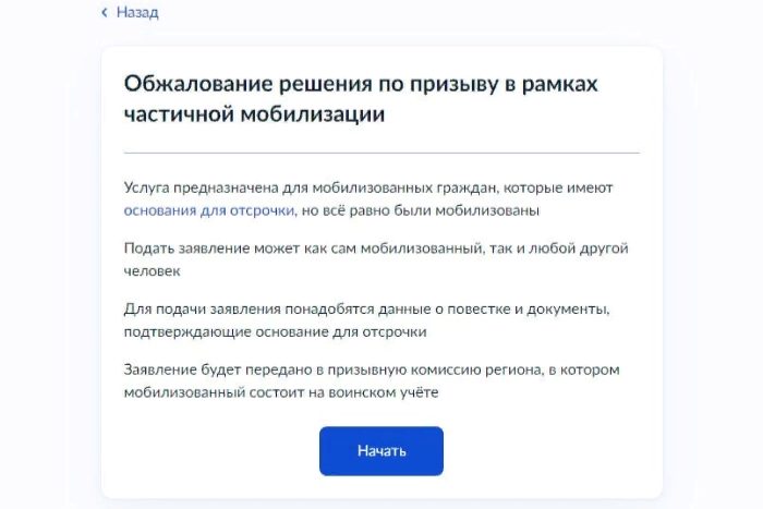 На портале «Госуслуги» запустили две новые формы: для обжалования повестки о мобилизации и для добровольного участия в войне.