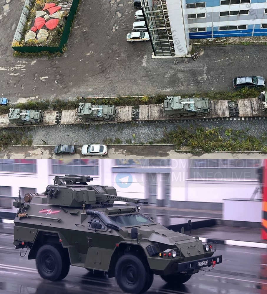 В воскресенье, 2 октября, пророссийский телеграм-канал "Рыбарь" опубликовал видео и фото "очередного железнодорожного состава с военной техникой, идущего к фронту по железной дороге где-то в центральной полосе России". Автор канала обратил внимание на то, что поезд перевозит бронеавтомобили КамАЗ-43269 "Выстрел" с боевыми модулями "Спица", включающими в себя 30-миллиметровую пушку и автоматический гранатомет.