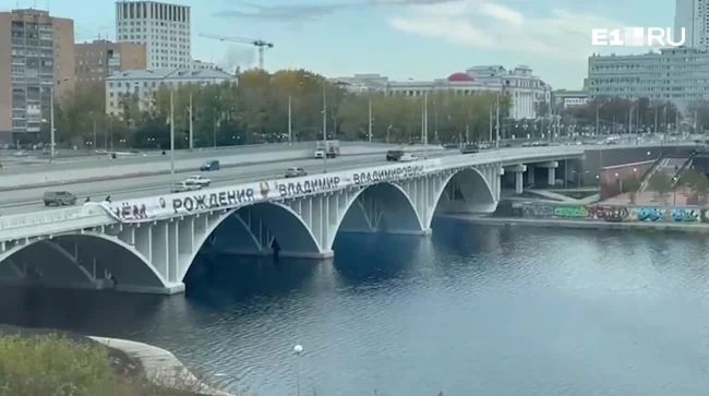 В Екатеринбурге задержали семь человек, которые повесили на Макаровском мосту баннер с текстом «С днем рождения, Владимир Владимирович!». Об этом сообщает местное издание E1.RU.