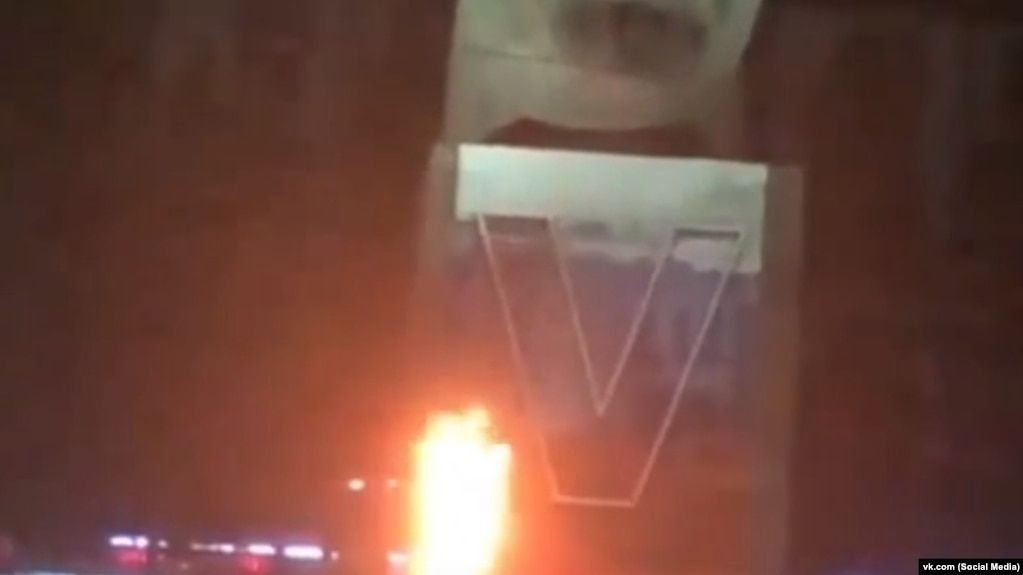 Неизвестный житель Улан-Удэ ночью поджег баннер с буквой V, расположенный рядом со зданием правительства региона. Подозреваемый подошел к символу войны, поджег его угол и скрылся. Пламя охватило лишь нижнюю часть плаката. Как сообщает корреспондент "Сибирь.Реалии", несмотря на то что происходящее очевидцы сняли на видео и выложили ролик в соцсети, полиция не знает, кто уничтожил плакат в центре города. В МВД заявили, что сейчас занимаются поиском поджигателя.