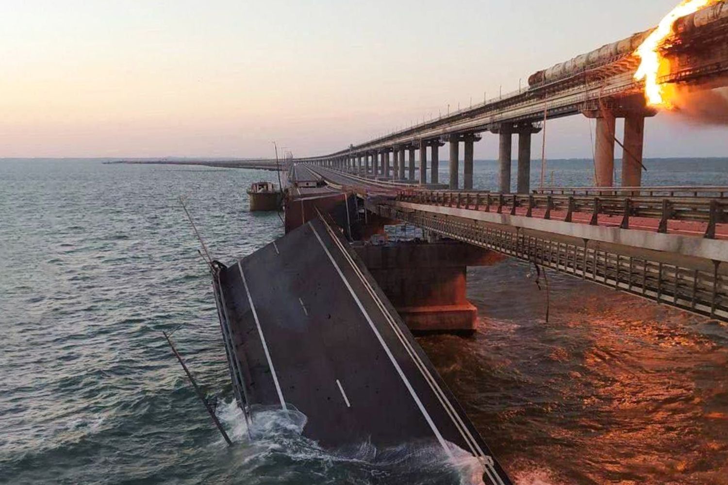 Мост через Керченский пролив — одно из самых защищенных мест в мире. По крайней мере, так казалось до того, как в субботу, 8 октября, на нем взорвалась фура, после чего загорелись семь топливных цистерн проходящего в этот момент по железнодорожному полотну состава (это пока единственная официальная версия). Рассказываем, кто и как охранял мост, обошедшийся строителям в 228 миллиардов рублей.